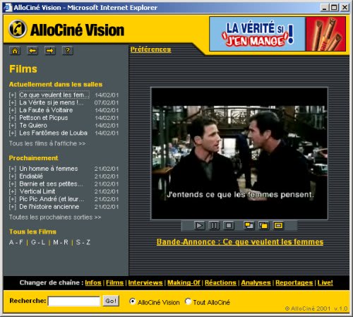 Faisant preuve de beaucoup de réussite ces dernières années, avec un service téléphonique, un site web très complet, et dernièrement une chaîne de télévision, AlloCiné lance maintenant un nouveau service Internet appelé AlloCiné Vision.