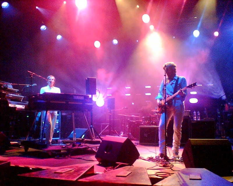 Tout de suite, sans un mot, les lumières commencent à s'agiter et le son à monter sur les mélodies lancinantes bien connues, un zest appuyé de Pink Floyd jonglant avec les voix vocodées et surtout une basse étincelante qui est au centre de la scène et de la musique. Une basse tenue par un Jason Falkner qui nous offrira même un délire de géniale saturation comme on n'en entend habituellement que provenant d'une guitare.