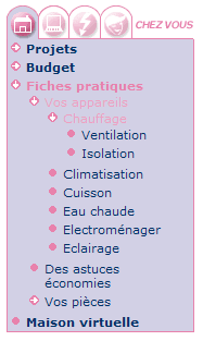 Sur le portail EDF. Le menu arborescent dynamique du site EDF pour les particuliers