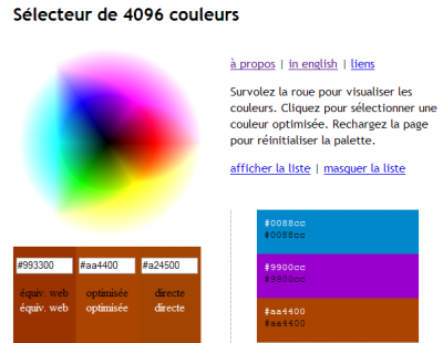 Il existe de nombreuses ressources sur Internet qui présentent les couleurs de la fameuse « palette web » limitée aux 216 couleurs supportées il y des années par le navigateur alors le plus répandu, Netscape Navigator. Mais le temps est venu d'oublier ces limitations du passé et de se mettre à des jeux de couleurs plus nuancés.
