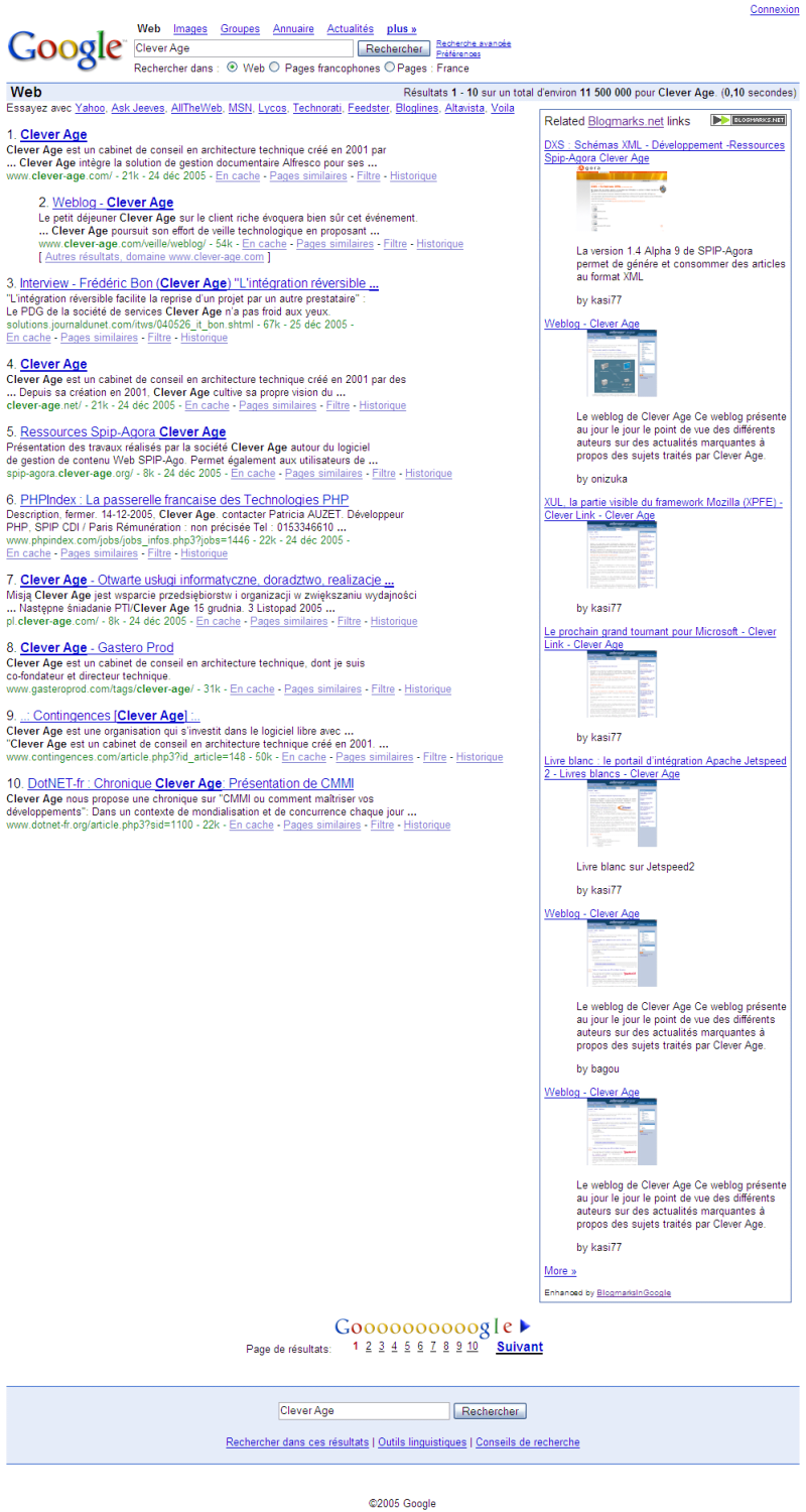 Et voici un apperçu de ce que cela donne pour une recherche sur Clever Age :