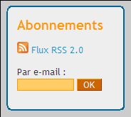 Au passage, FeedBurner met à disposition un formulaire d'inscription à l'envoi par e-mail des nouveautés du site, donc j'ai créé un nouveau bloc en haut à droite de la page d'accueil[4] :