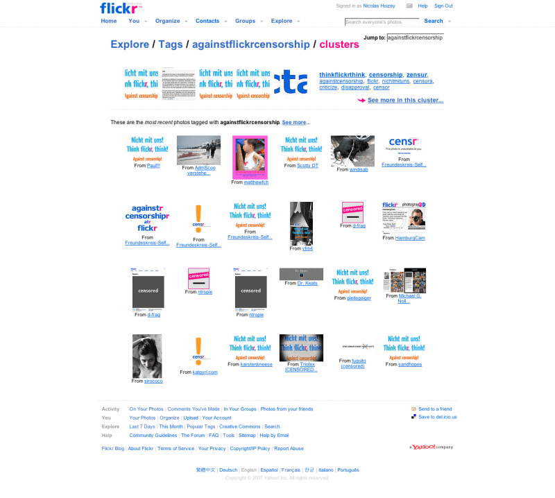 Cluster de photos sur Flickr tagguées avec « againstflickrcensoship »
