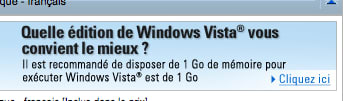 Vu sur la boutique en ligne de Dell, cette information vraiment pertinente à propos de la mémoire RAM nécessaire pour faire tourner le système d'exploitation Windows Vista de Microsoft.