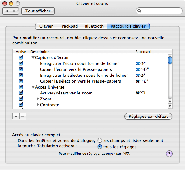 Il suffit d'aller dans le panneau « Clavier et souris » des « Préférences Système », et d'y sélectionner tout en bas le bouton radio « tous les réglages » :