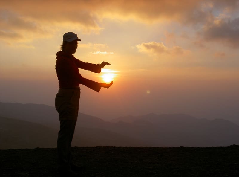 Presque au sommet de la Sierra Nevada, près de Grenade en Andalousie, tentant d'attraper le soleil en train de se coucher.