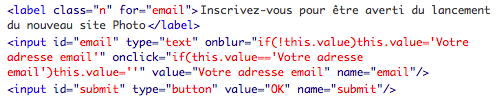 Vous noterez au passage la délicieuse intrusion de code JavaScript en ligne directement dans l'input
