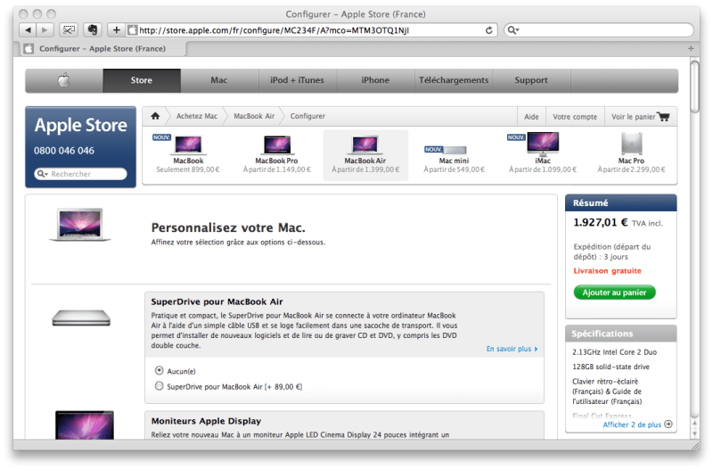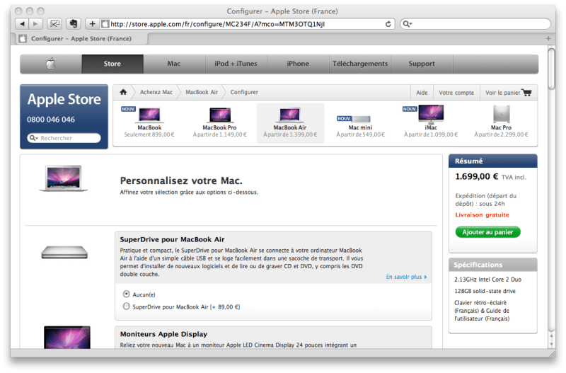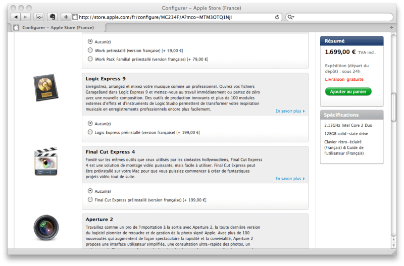 Résumé de la commande toujours visible sur l'Apple Store. Quand on descend dans la page, le résumé de la commande suit le mouvement pour rester toujours visible.