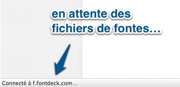 a commencé à être largement implémenté dans les navigateurs, ils ne se comportaient pas de la même façon. Firefox par exemple présentait d'abord les textes avec des fontes web safe présentes sur le poste client, avant de redessiner les textes avec les bonnes fontes une fois celles-ci téléchargées. Cela donnait un effet très pénible bien décrit dans le billet de référence sur le sujet, Fighting the @font-face FOUT par Paul Irish. Aujourd'hui, le comportement des navigateurs est plus homogène, ils attendent tous quelques secondes sans rien afficher avant de se rabattre sur le fallback si nécessaire. Il faut donc que les fichiers de fontes soient téléchargés le plus vite possible par le navigateur pour réduire la durée de non affichage.