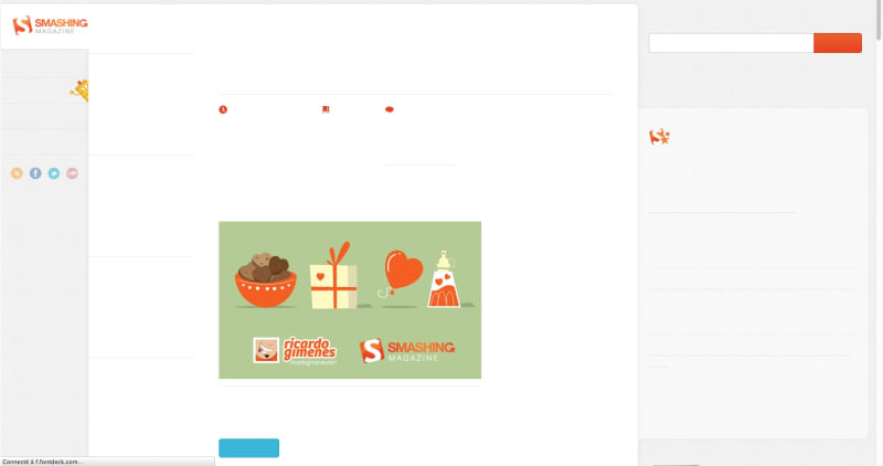 Dans le cas de Smashing Magazine illustré ici et de tant d'autres sites, une difficulté supplémentaire s'ajoute. Le service Fontdeck que l'on voit dans la base de tâche ci-dessus fait partie des leaders des solutions SaaS de fourniture de fontes, avec notamment Typekit maintenant dans le giron d'Adobe, et Google Web Fonts en alternative gratuite.
