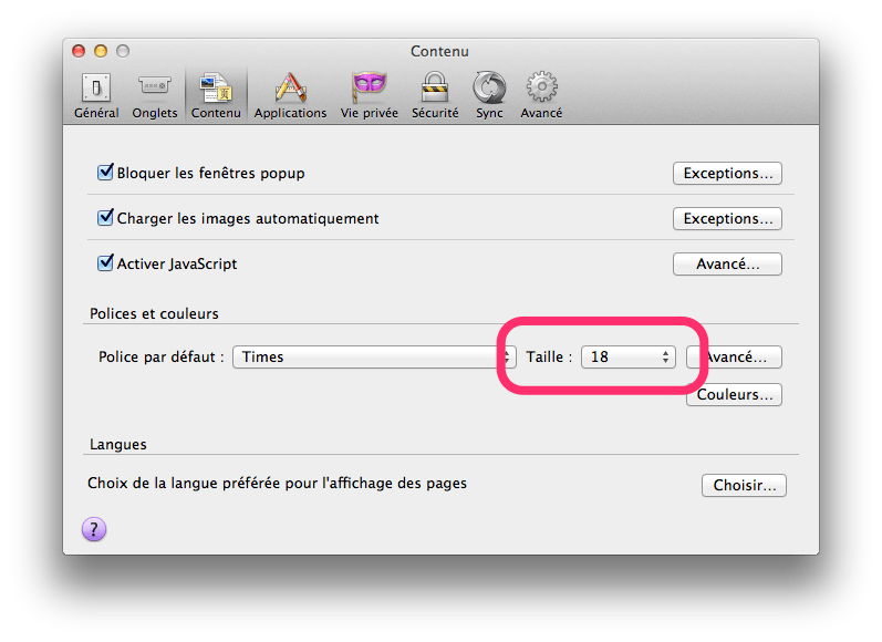 J'ai donc passé cette taille par défaut à 18px dans les préférences de mon Firefox :