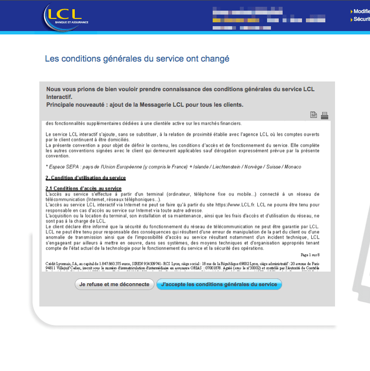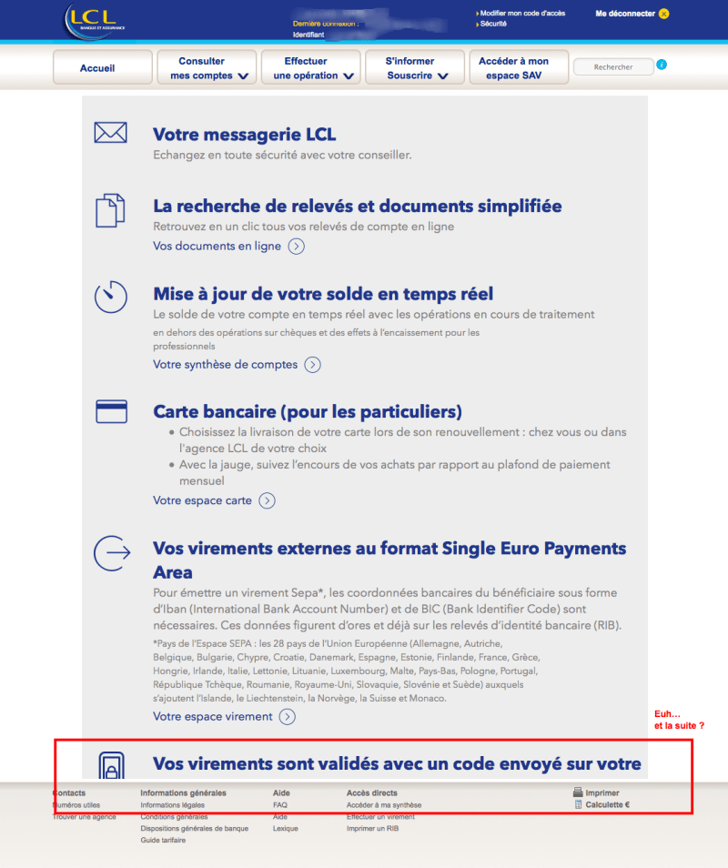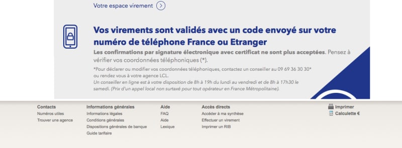 Je suis client de la banque LCL parce que c'est celle qui m'a fait la meilleure offre quand j'ai voulu acheter une maison, et qu'une condition à ce prêt était que je domicilie mes comptes courants chez eux. Je regrette ce choix chaque fois que je dois accéder à l'interface en ligne…