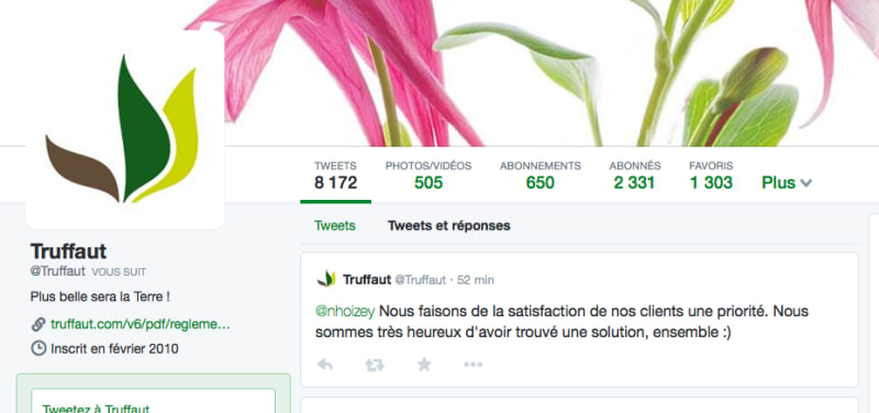 Voilà une nouvelle preuve qu'il est possible de gérer de façon exemplaire un service après vente via Twitter, un grand merci à Truffaut qui a été parfait sur ce coup !