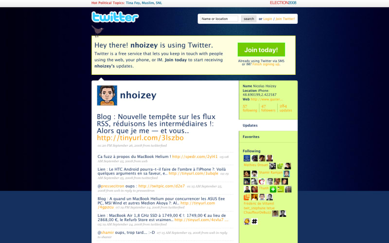 My Twitter profile in 2008 (full page)