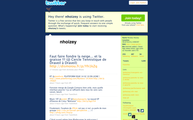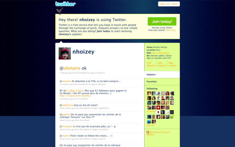 My Twitter profile in 2009 (full page)