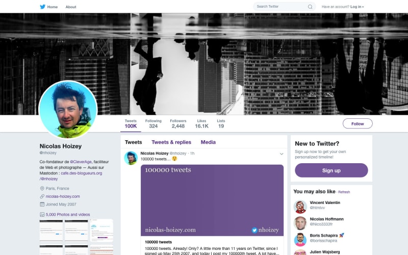100000 tweets. Already! Only? A little more than 11 years on Twitter, since I signed up May 25th 2007, and today I post my 100000th tweet. A lot have changed on Twitter, and it has brought me a lot of great things.